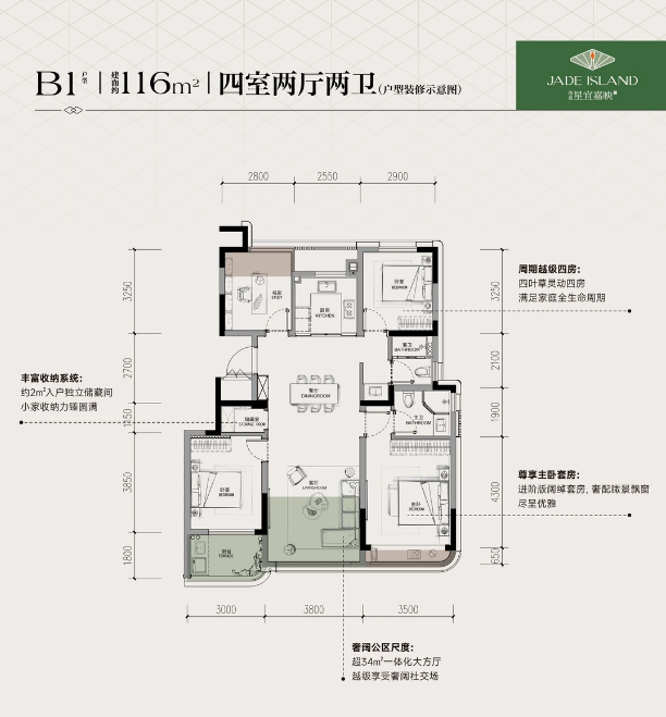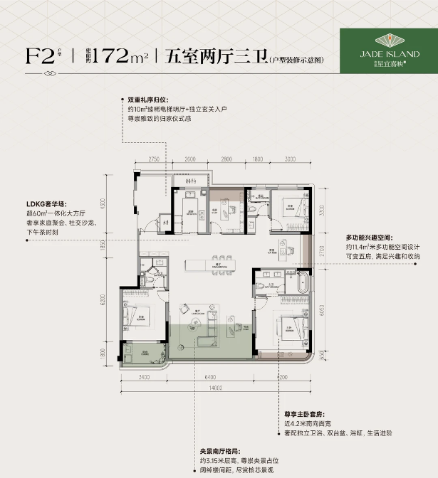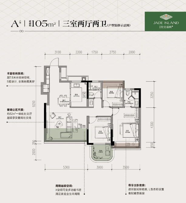 建筑面积: 105㎡(3房2厅2卫)